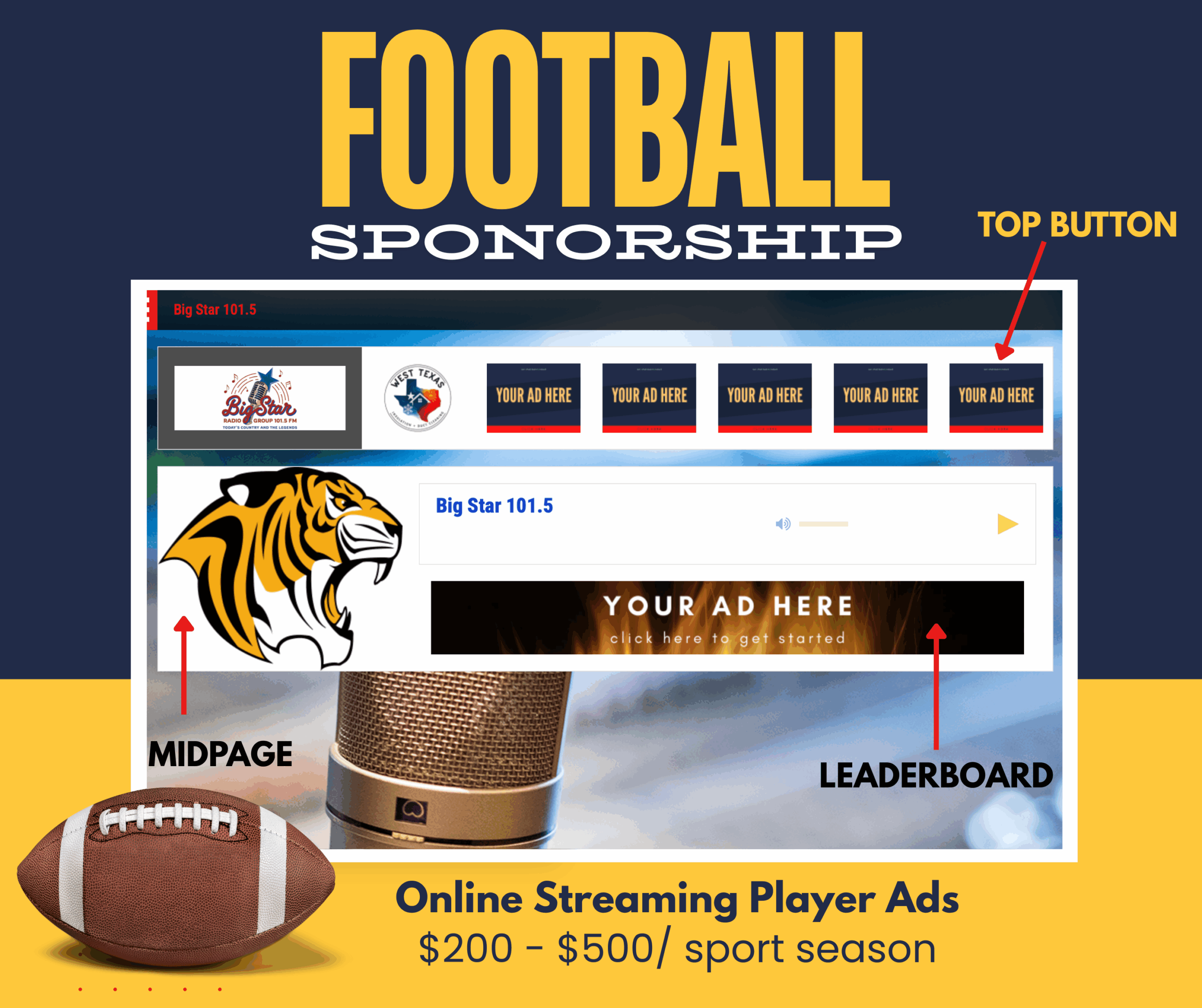 We have a high number of our listeners visiting our streaming website to listen to the Snyder Tigers’ games and this is why we are offering a streaming package in addition to radio ads!
